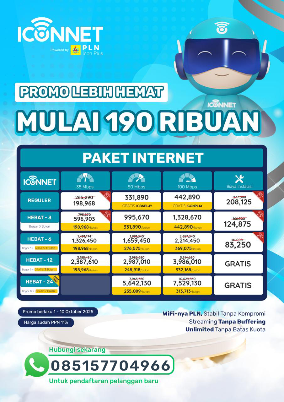 Situs ini bukan situs resmi ICONNET . Kami adalah mitra independen yang menyediakan informasi paket, harga, dan panduan pendaftaran ICONNET untuk memudahkan calon pelanggan.
